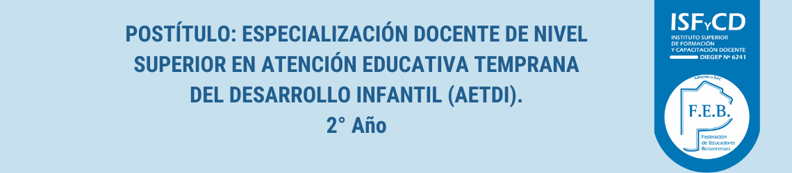 Convenios / Federación de Educadores Bonaerenses (FEB) / POSTITULOS FEB / POSTÍTULO: ESPECIALIZACIÓN DOCENTE DE NIVEL SUPERIOR EN ATENCIÓN EDUCATIVA TEMPRANA DEL DESARROLLO INFANTIL (AETDI). Res. N° 1165/19. / Segundo año / Segundo año 2025 / 2º 2da 2025
