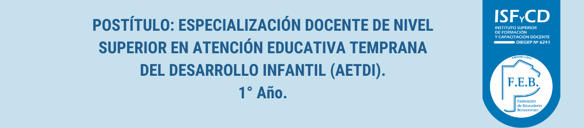 Convenios / Federación de Educadores Bonaerenses (FEB) / POSTITULOS FEB / POSTÍTULO: ESPECIALIZACIÓN DOCENTE DE NIVEL SUPERIOR EN ATENCIÓN EDUCATIVA TEMPRANA DEL DESARROLLO INFANTIL (AETDI). Res. N° 1165/19. / Primer año / Primer año 2024 / 1º 2da 2024