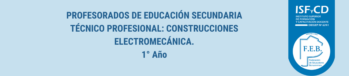 Convenios / Federación de Educadores Bonaerenses (FEB) / PROFESORADOS DE EDUCACIÓN SECUNDARIA TÉCNICO PROFESIONAL: CONSTRUCCIONES (RES. 5745/23) ELECTROMECÁNICA (RES. 5746/23) / Tercer año / Tercer año 2026 / CURSADA ELECTROMECÁNICA 2026